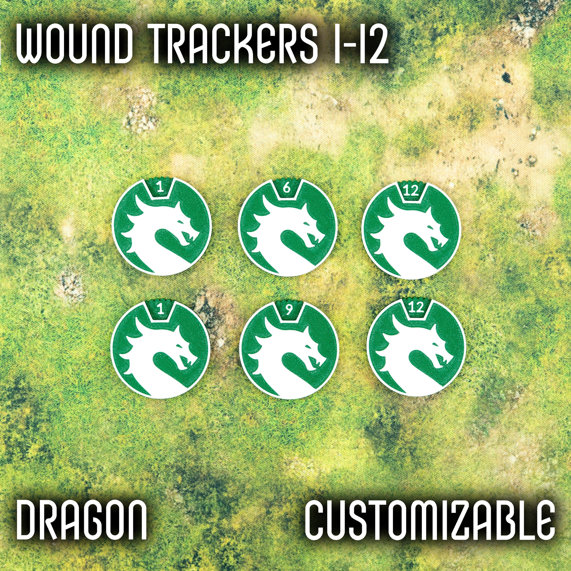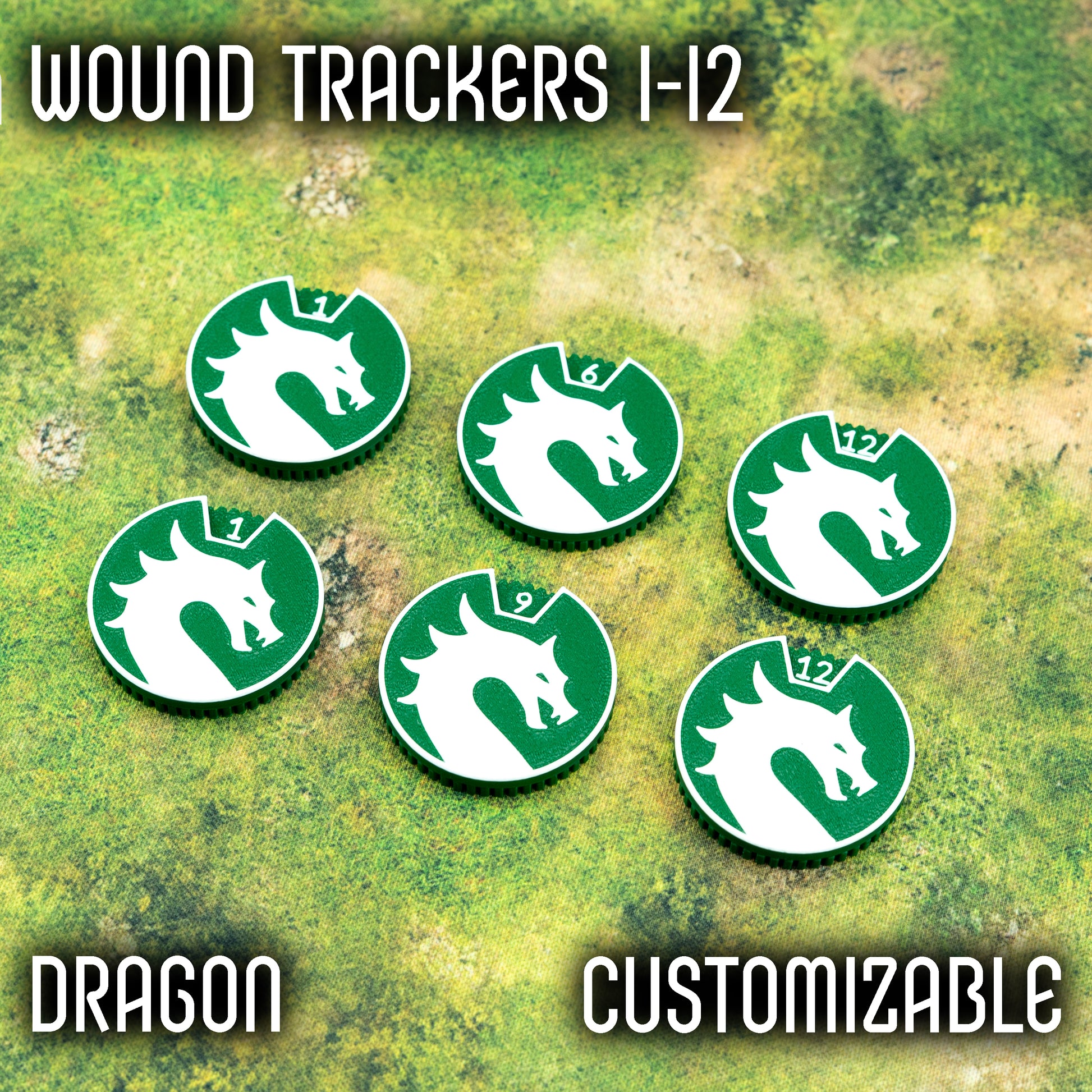 Enhance your tabletop gaming experience with this uniquely crafted wound tracker, designed to keep precise count of up to 12 wounds with customizable colors inspired by the striking Dragon style visible in the listing image. This accessory stands out by combining function and thematic flair, ensuring your gameplay remains immersive and organized without the hassle of tallying wounds manually or by using dices.