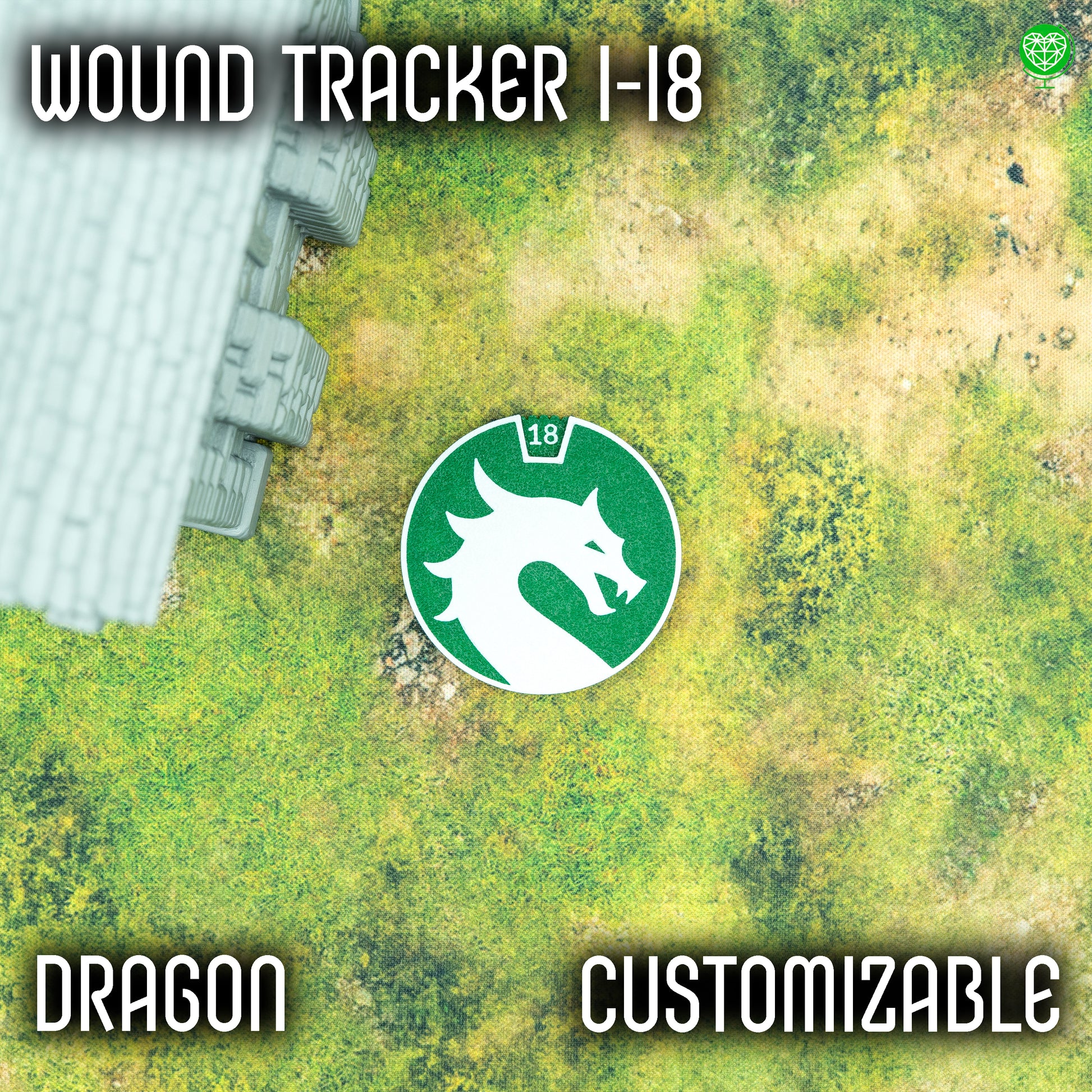 Enhance your tabletop gaming experience with this uniquely crafted wound tracker, designed to keep precise count of up to 18 wounds with customizable colors inspired by the striking Dragon style visible in the listing image. This accessory stands out by combining function and thematic flair, ensuring your gameplay remains immersive and organized without the hassle of tallying wounds manually or by using dices.